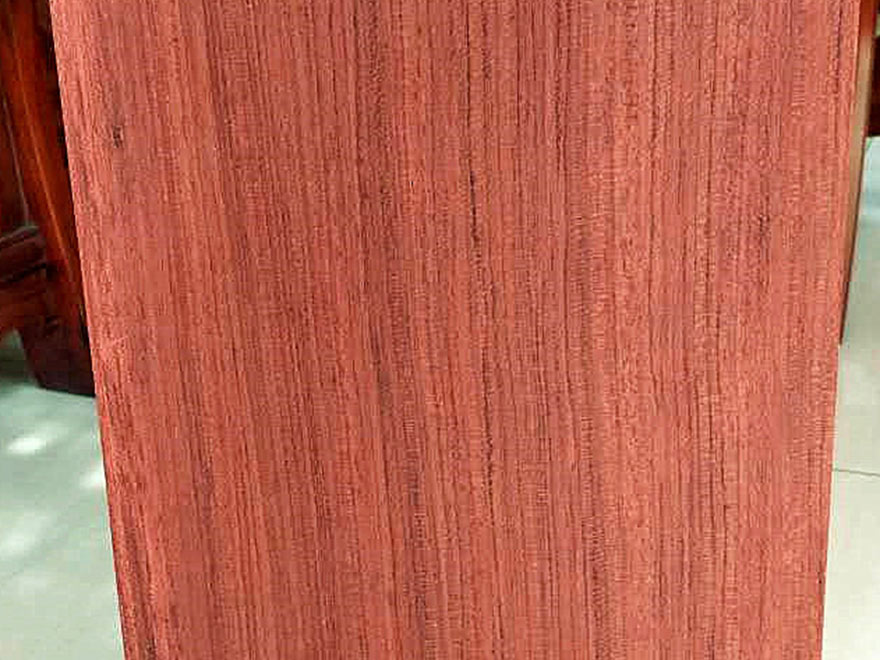 大喬木,高24~30M,直徑1.0M以上;具較大板根。本屬15種,分布于熱帶非洲,其中非洲有11種。只要從喀麥隆、赤道幾內(nèi)亞、加蓬進(jìn)口,量較大。宏觀特征:散孔材。心材紅褐色,常具深色條紋,與邊材區(qū)別明顯。邊材奶油色,寬2~8cm。生長(zhǎng)輪略明顯。界以輪界薄壁組織外,皮呈圓形小鱗片狀脫落,脫落后殘留卵圓形淺凹坑。樹皮受傷后會(huì)流出紅色膠質(zhì)。管孔稀少,不大。心材紅褐色帶紫色條紋。 木材材性具光澤;略具酸味。紋理直至略交錯(cuò);結(jié)構(gòu)細(xì)而均勻;質(zhì)量硬;強(qiáng)度高;干縮大。加工容易,刨切、車旋、握釘、油漆以及膠黏性能均好。耐腐,抗白蟻。干燥較快,無(wú)缺陷。氣干密度0.88~1.10g/cm3。 木材用途適用于豪華家具、刨切薄木、細(xì)木工、裝飾單板、地板、雕刻、生活器具等。